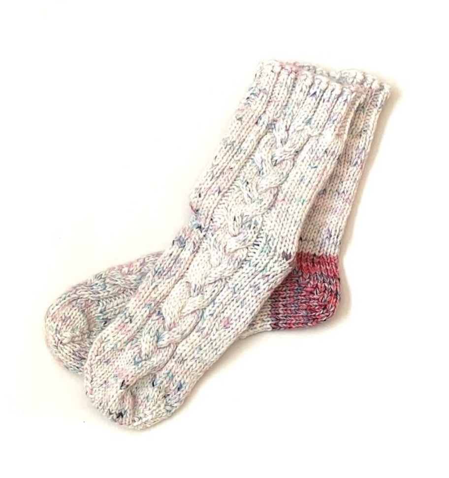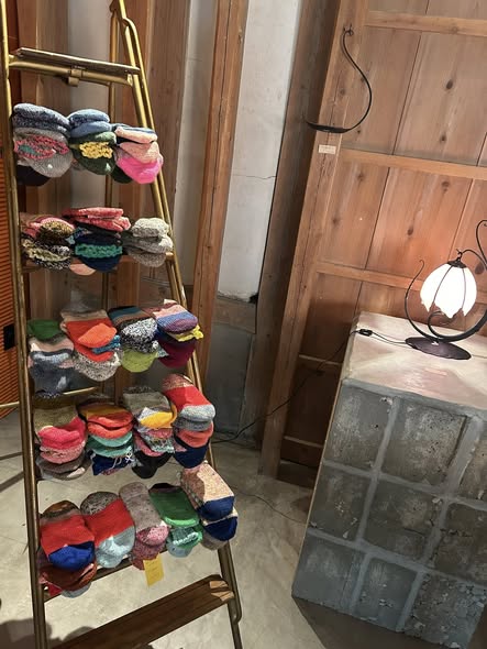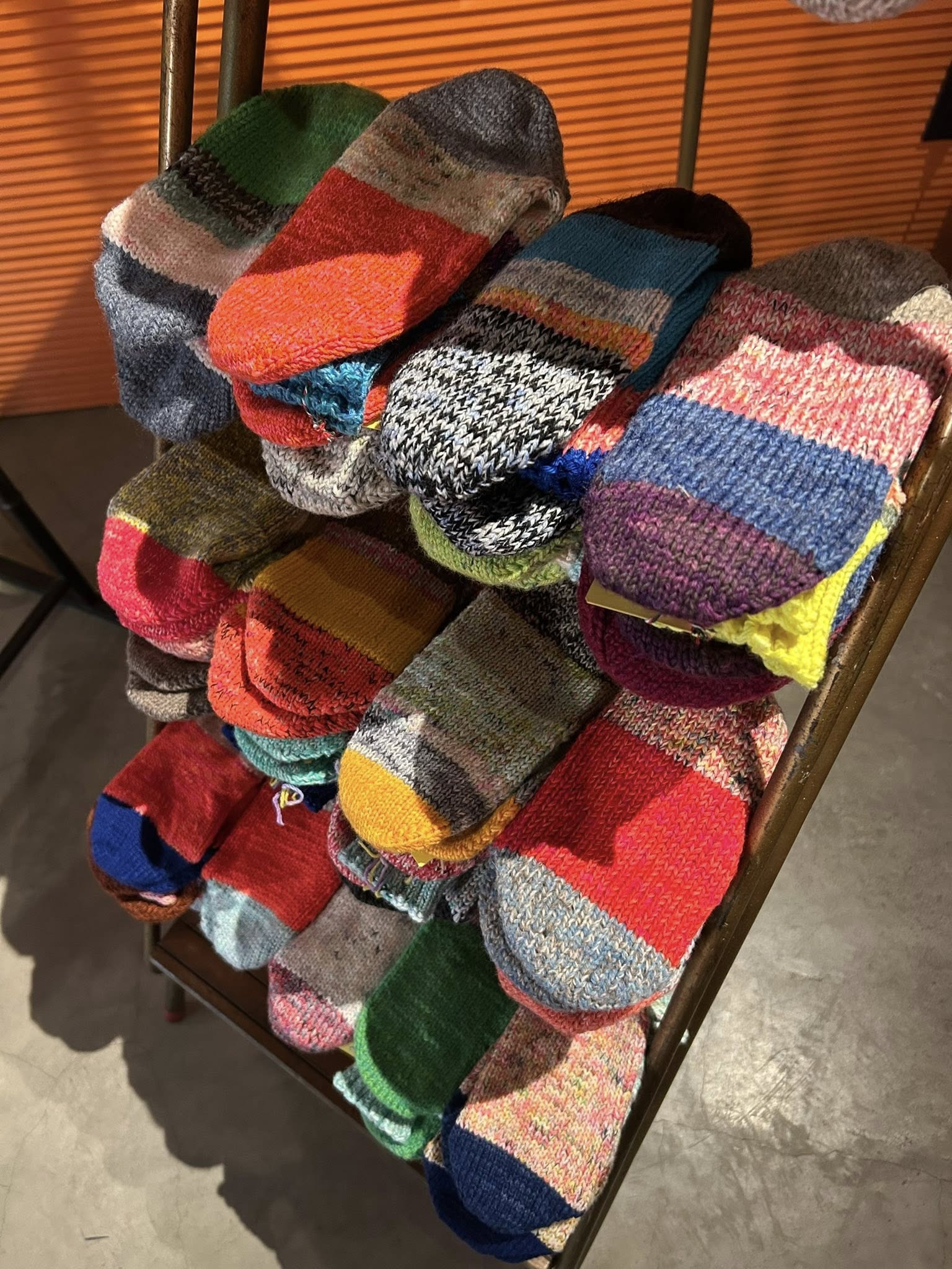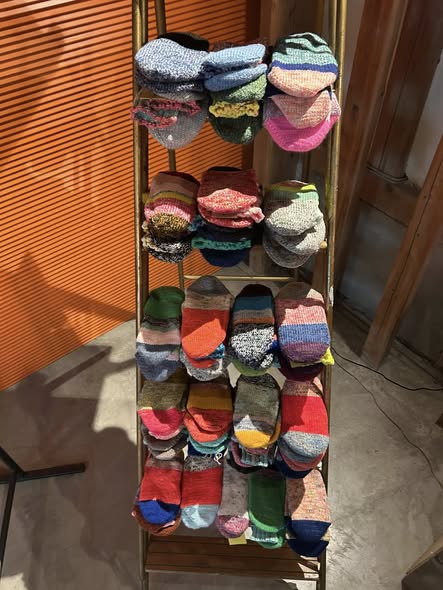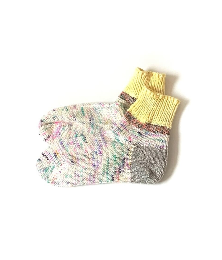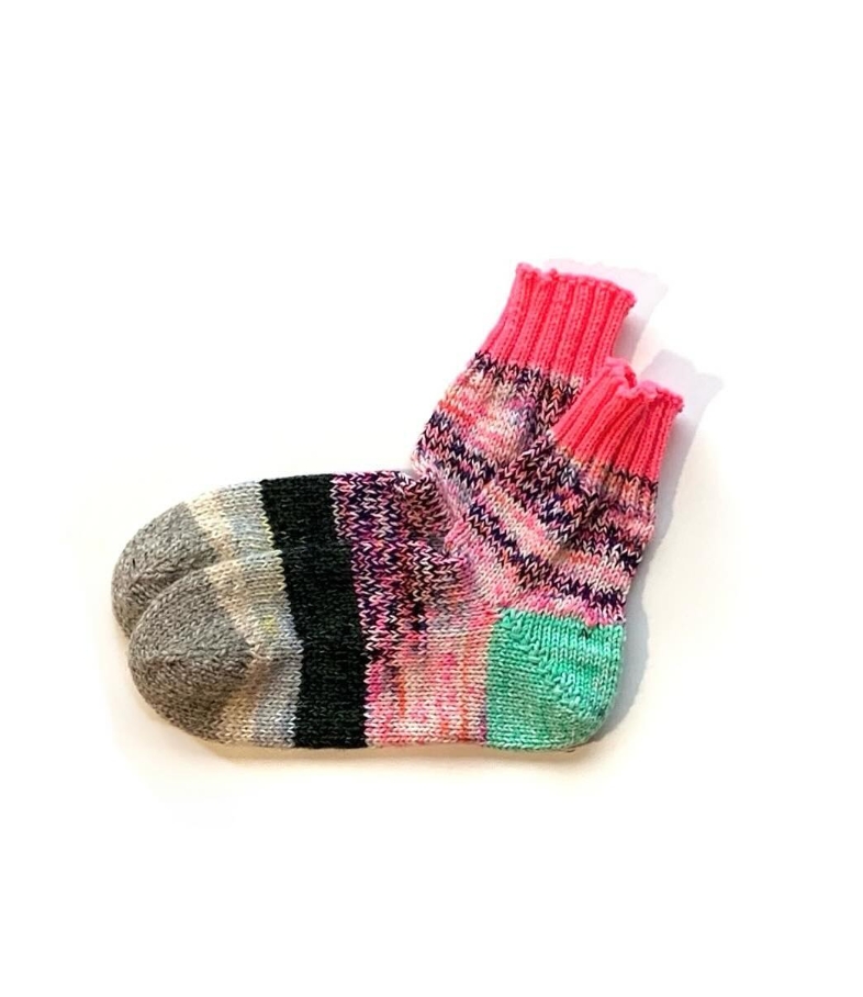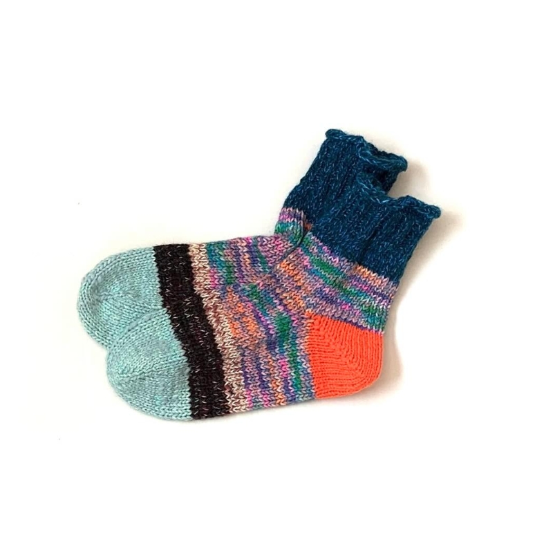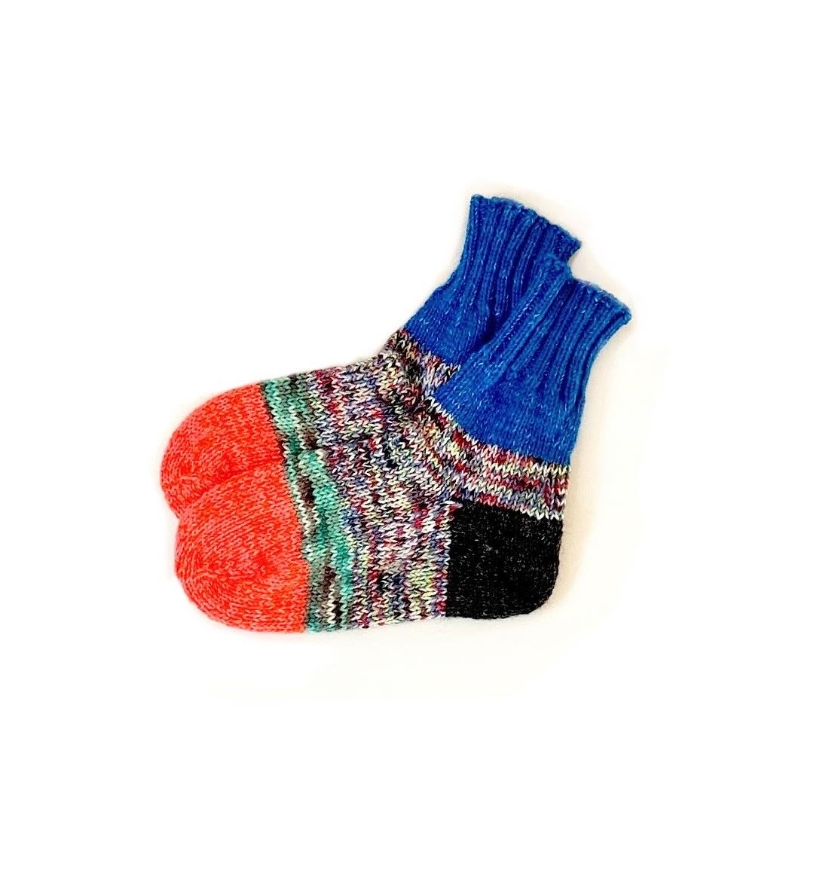 毎年この時期を楽しみに待つ方が多い、しろはこの手編みウールソックス。足を通した瞬間から包み込まれるような暖かさで、寒い季節に欠かせない存在です。暖かいだけでなく、ひとつひとつ異なる毛糸の色合わせが魅力で、足元にふと目をやるたび気持ちまで明るくしてくれます。冷え性の方からの支持も高く、二足、三足と選ばれる方が多いのも特徴。すべて一点もののため同じ組み合わせは二つとありません。毎年争奪戦になるのも納得の、冬に大活躍間違いなしの靴下です。