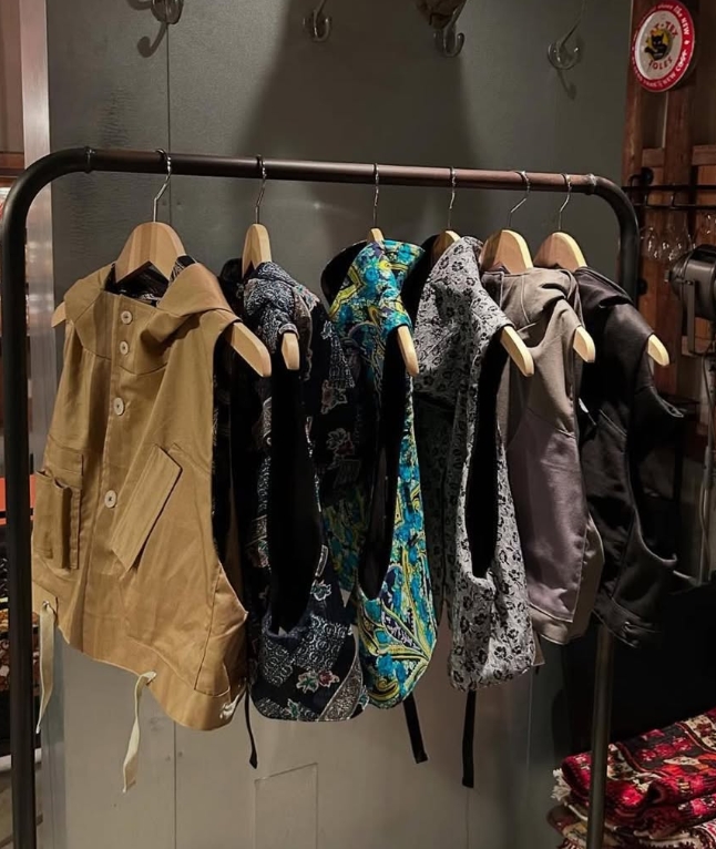 「Today is Happy」をコンセプトに、一癖あるデザインと遊び心で“着るだけでハッピーになれる”服を提案するmacu macuさん。今回の展示販売では、定番人気のショルダーボレロをはじめ、カラー・素材・シルエットすべてに元気とユーモアを込めたアイテムが並びます。ショルダーボレロは入荷直後にSOLD OUTとなるほどの人気で、ワンピース・ブラウス・パーカー・スエット・ジャケット・コートなど幅広いコーディネートにマッチ。これからの季節にも活躍するスーパーアイテムです。 カラフルなテキスタイルの小物や、クマ型バッグ・ぬいぐるみ風のアクセサリーなど、見ているだけでもワクワクするアイテムが充実。20代から60代まで幅広い層から支持され、思わず「かわいい!」「元気になる!」と手に取る方が多いラインナップです。ぜひ一度、実際に触れて試着し、macu macuならではの世界観を体験してください。